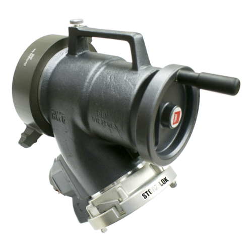Traditional piston intake valve design used for pumper intake control. Provides the following features: a 30 degree integrated elbow, a field adjustable pressure relief valve and an air bleeder valve.