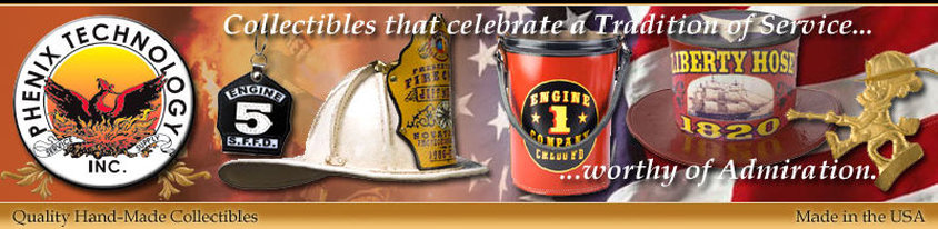 | Custom Leather Shields Parade Shields for those special functions. Our leather shields are made from real leather, are stamped with leather dyes, and come in a variety of sizes, shapes, and colors. They can be customized for your individual department and rank. Detroit Metal Shield Hailing from the home of Motown, Cadillac, and legendary boxer Joe Louis, Detroit Shields have been worn by Detroit firefighters for over 100 years and are now being worn by many departments throughout the United States. They are made of 17 gauge steel, powder coated, and then covered with three layers of deep clear coating. | ![]() |